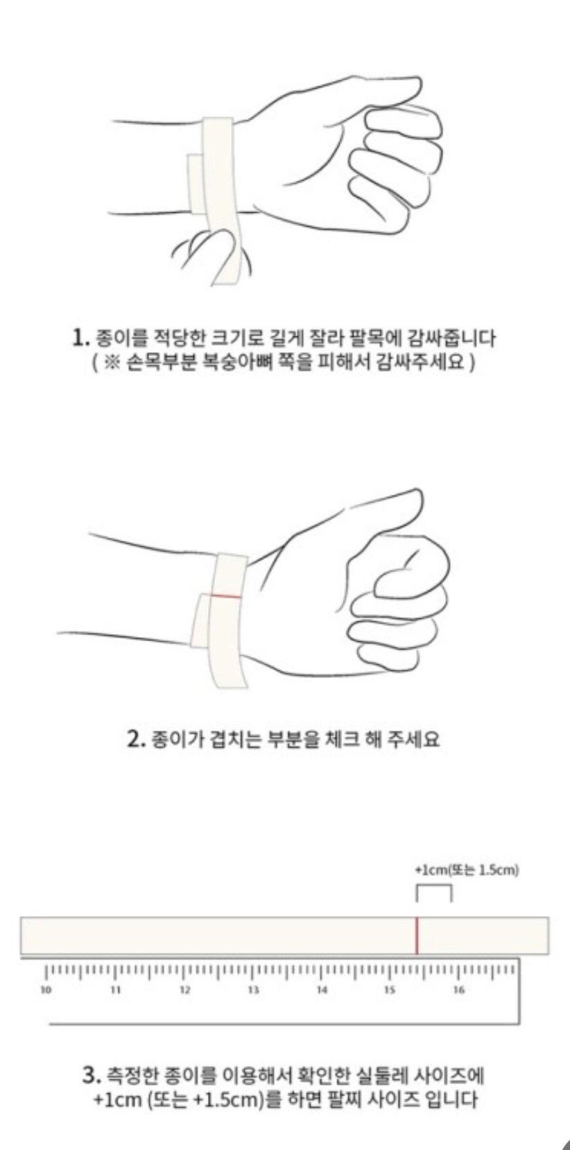 1. 구입하시려는 반지의 폭에 맞게 종이를 잘라 반지를 착용하실 손가락에 두른 후,