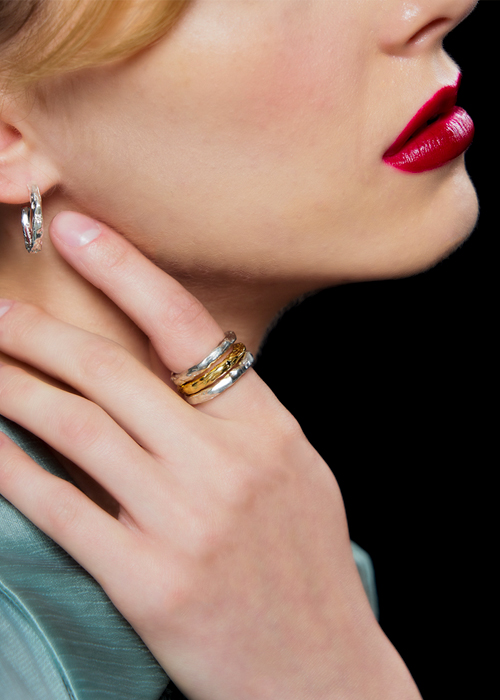 - 플라타너스 나무에서 영감받은 질감이 스타일리쉬한 반지입니다.