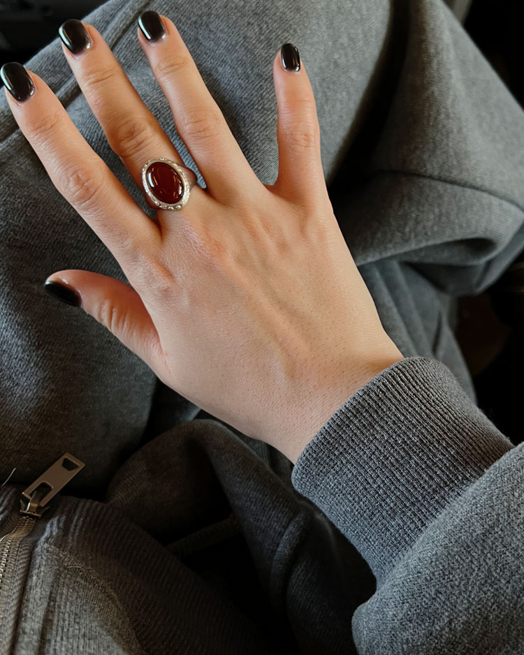 오벌 원석 포인트링입니다. - 카넬리언 (자마노)는